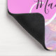Girly rainbow holographic iridescent monogram name and initial mouse pad. Your custom name and monogram are written in an elegant hand lettered script with a pink background. A perfect birthday or Christmas gift!