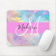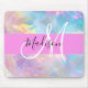 Girly Rainbow Holographic Iridescent Monogram Name Mouse Mat