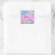 Girly rainbow holographic iridescent monogram name and initial square sticker. Your custom name and monogram are written in an elegant hand lettered script with a pink background. A perfect birthday or Christmas gift!