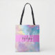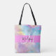 Girly Rainbow Holographic Iridescent Monogram Name Tote Bag