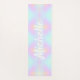 A yoga mat with a rainbow holographic ombre pink and blue background and personalised with your name, or your favourite yoga quote.