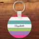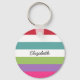 A bright and girly rainbow coloured wide horizontal striped keychain in hot pink and vibrant rainbow coloured striped pattern. Personalise this modern and preppy design by adding your name.