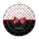 Girly Red and Black Polka Dot Hearts Bow With Name Dartboard