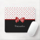 Girly Red and Black Polka Dot Hearts Bow With Name Mouse Mat