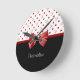 Girly Red and Black Polka Dot Hearts Bow With Name Round Clock