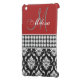 GIRLY, STYLISH, RED, BLACK AND WHITE DAMASK PATTERN YOU CAN PERSONALIZE WITH YOUR NAME AND YOUR MONOGRAM OR YOUR TEXT. ELKE CLARKE© A PHOTO OF A BAND OF DIAMONDS ARE PRINTED ON THE FLAT PLASTIC CASE. A GREAT GIFT FOR HER.