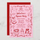 Girly Red Pink Hand Drawn Galentine's Pajama Party Invitation