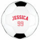This soccer ball features a minimalistic design that contains a customisable name in bold red font and a number in bold pink font. Personalise it with a name and number in the colours of your favourite team and make it a perfect gift for a birthday or an upcoming holiday. Click on Personalise and then Customise further to change colours, font, or add more elements.