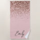 Girly Rose Gold Blush Pink Glitter Monogram Beach Towel