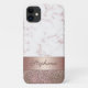 This girly glitter phone case will have your phone protected in style. This trendy design features textures of rose gold and white marble, rose gold faux metallic texture and faux rose gold glitter. Atop the rose gold metallic is a name in script typography in dark rose gold for you to personalise. Makes a unique elegant gift for any special occasion. Designed by artist ©Susan Coffey.