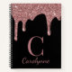 Girly Rose Gold Sparkle Glitter Drips Monogram Notebook with fashion faux blush pink/rose gold glitter drips on a chic black background with your custom monogram and name. Designed by Cedar and String. To personalize further, please click the "customize further" link and use the design tool to modify the design. If you need assistance or matching items, please contact us.