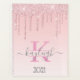Modern, girly rose gold glitter drips on pink white ombre background spiral 2021 planner. This design features blush pink rose gold sparkle glitter drips on light pink white ombre background with name and monogram text template. The name is written with a beautiful swirly hand lettered style script. Perfect feminine gift for pink lover girly girls. If you need help or matching items, please contact to me.