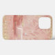 "Girly Rose Gold Glitter Jewel Foliage Script Name and Monogram iPhone 13 Case." Elegant glitz and glam phone case that features, rose gold bokeh glitter sparkle brush stroke paired with layers of blush pink and white diamond dust and jewels. A leaf foliage greenery pattern in blush pink is topped off by a watercolor splatter and brush stroke design that has been graphically designed into gold glitter. Graphically designed by internationally licensed artist, Audrey Jeanne Roberts, copyright.