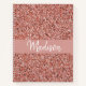 Both front and back are designed with trendy pink rose gold faux glitter background. The front of spiral notebook has personalised white calligraphy script lettering.