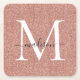 Girly Rose Gold Glitter Sparkle Monogram Script Name Square Paper Coaster