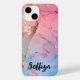 Rose gold iPhone case, pink agate quartz phone case, sparkle iPhone case, monogrammed phone case, girly iPhone cover, elegant iPhone case, personalised iPhone accessory, stylish iPhone 15 case, custom monogram Case-Mate, luxury phone case.