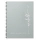 Modern, Sage Green Elegant Monogram Name Feminine Signature Script Spiral Notebook. This minimalist plain colour design featuring your first name in a pretty hand lettered swash tail font typography, with full name template on sage green or dusty green colour background. Easy to personalise. Great custom personalised girly gift for Birthday Party, Bridal shower, Wedding, SWEET 16 Birthday party, BABY shower and for anyone who loves pretty delicate minimalist style.