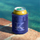Girly Sapphire Blue Glitter Drips Monogram Name Can Cooler