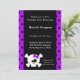 White skull birthday invitations with a skull and cross bone graphic.Purple and black dotted background that matches skull's purple bow. Customise with your party details.delightfuldoodles