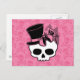 Girly Skull with Hat and Pink Bow Postcard