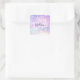 Girly and cute square sticker with a colourful pink, purple, lilac and blue unicorn rainbow hearts sparkly background. Your custom name and monogram are written in an elegant hand lettered script with a lilac purple unicorn paint brush strokes stripe background. A perfect birthday or Christmas gift!