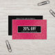 Modern, girly networking discount or coupon card featuring digital image of raspberry pink metallic glitter pattern. Black stripe overlay. Great for beauty, fashion , entertainment and event professionals.
