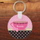 Girly Teacup Pink and Brown Polka Dot Bow and Name Key Ring