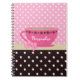 Girly Teacup Pink and Brown Polka Dot Bow and Name Notebook