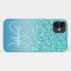 Girly Teal Faux Glitter Monogram Name Personalised Case-Mate iPhone Case