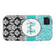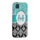 Girly, Teal, Glitter Black Damask Personalised Case-Mate iPhone Case