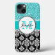 Girly, Teal, Glitter Black Damask Personalised Case-Mate iPhone Case