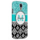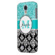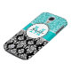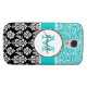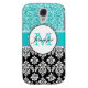 Girly, Teal, Glitter Black Damask Personalised Case-Mate Samsung Galaxy Case