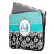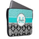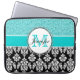 Girly, Teal, Glitter Black Damask Personalised Laptop Sleeve