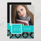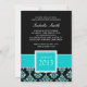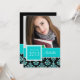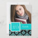 GIRLY TEAL GLITTER DAMASK GRAD PHOTO INVITATION