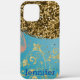 Girly Teal Glitter Gold Ombre Monogram Name iPhone 12 Pro Max Case.
