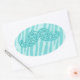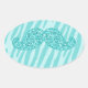 GIRLY TEAL GLITTER MUSTACHE ZEBRA STRIPES OVAL STICKER