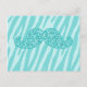 GIRLY TEAL GLITTER MUSTACHE ZEBRA STRIPES POSTCARD