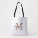 Elegant eye-catching design on this stylish tote bag. Brown/Gold letter monogram on a white background for a beautiful tonal motif. Very stylish for the stylish woman!