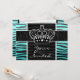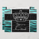 Girly turquoise and black zebra print crown invitation