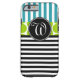 GIRLY TURQUOISE GREEN BLACK STRIPES MONOGRAM Case-Mate iPhone CASE