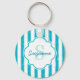 Girly Turquoise Painted Stripes Monogram and Name Key Ring