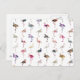 Girly Whimsical Retro Floral Flamingos Pattern Postcard