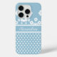 Girly White Flowers and Polka Dots on Light Blue Case-Mate iPhone Case