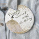 Girly White Golden Glittery Ball Gown Sweet 16th Birthday Button. For your 16-years-old girl party.