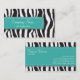 These professional & trendy business cards are perfect for your business! They feature a black & white wild zebra stripes background. On top of the background is a teal bar with room for your business name, tagline, your name, job title & contact details. Very cute design for hair salons, a hair stylist, boutiques, interior designers, makeup artists, fashion and much more!