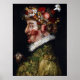 A portrait of a man made completely of flowers and leaves as painted by Italian artist Giuseppe Arcimboldo.