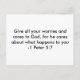Use as a post card to friends that are worried about finances or work or other things. Or use as a study aid to remember scriptures.
