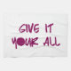 Motivational workout towel for athletes and people who make health and fitness and going to the gym a priority. Inspiration to help you through your workout, getting you closer to your goals. Hard-core athletes know you have to 'give it your all.' A collection of these motivational towels would make a great gift for anyone who is looking to put more focus on their health and more effort into their workouts. Feel free to change the background colour of this fitness towel to match your personal style.