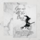 A spooky witch flying a broomstick and the fun saying, Give me all the Boos, accents this Halloween Costume Party Invitation on a marble background, making this invitation perfect for the Adult Halloween Party.