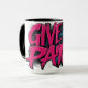 The "Give Me Pain" mug design features a striking and edgy graphic centred on a bold phrase. The text, "Give Me Pain," is written in a jagged, distressed font, evoking a sense of intensity and raw emotion. It’s placed against a dark background, possibly with splashes of red or grunge textures to enhance the aggressive and dramatic tone. Beneath or around the text, abstract elements such as shattered glass, barbed wire, or flames might be incorporated, emphasising the theme of resilience and embracing adversity. This design is perfect for those who want to express a fearless and defiant attitude.